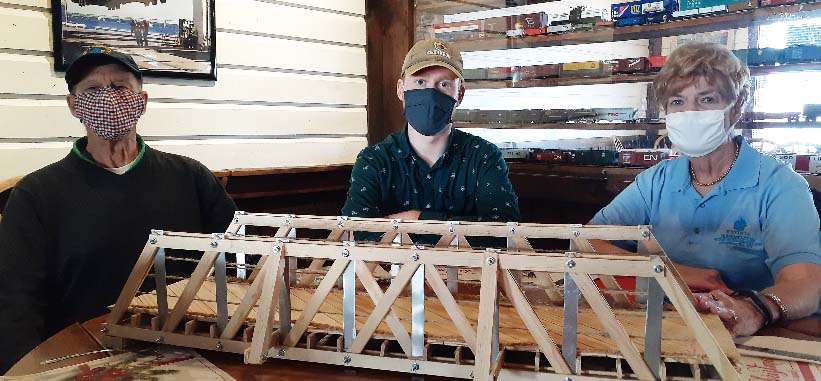 Several designs were formulated by students from both the Mechanical and Civil Engineering Departments. Drawings were presented to the Association for input. Three of the Fall 2021 Semester mechanical engineering students, Derrick Fouts, Zoe Murray, and Donny Nadon built the 1/12 scale model of the bridge they had helped to design to give a more striking visualization of the bridge than the drawings. They worked under the guidance of Professor Ron Buckingham.