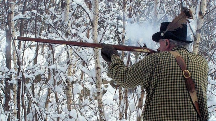 Event Coordinator Fred Hanss said the event requires participants to traverse a race course through the woods on snowshoes and fire a muzzle loading rifle or smoothbore twice at each of five targets placed in the woods. At the final station, participants may toss a tomahawk at a block of wood for extra points.