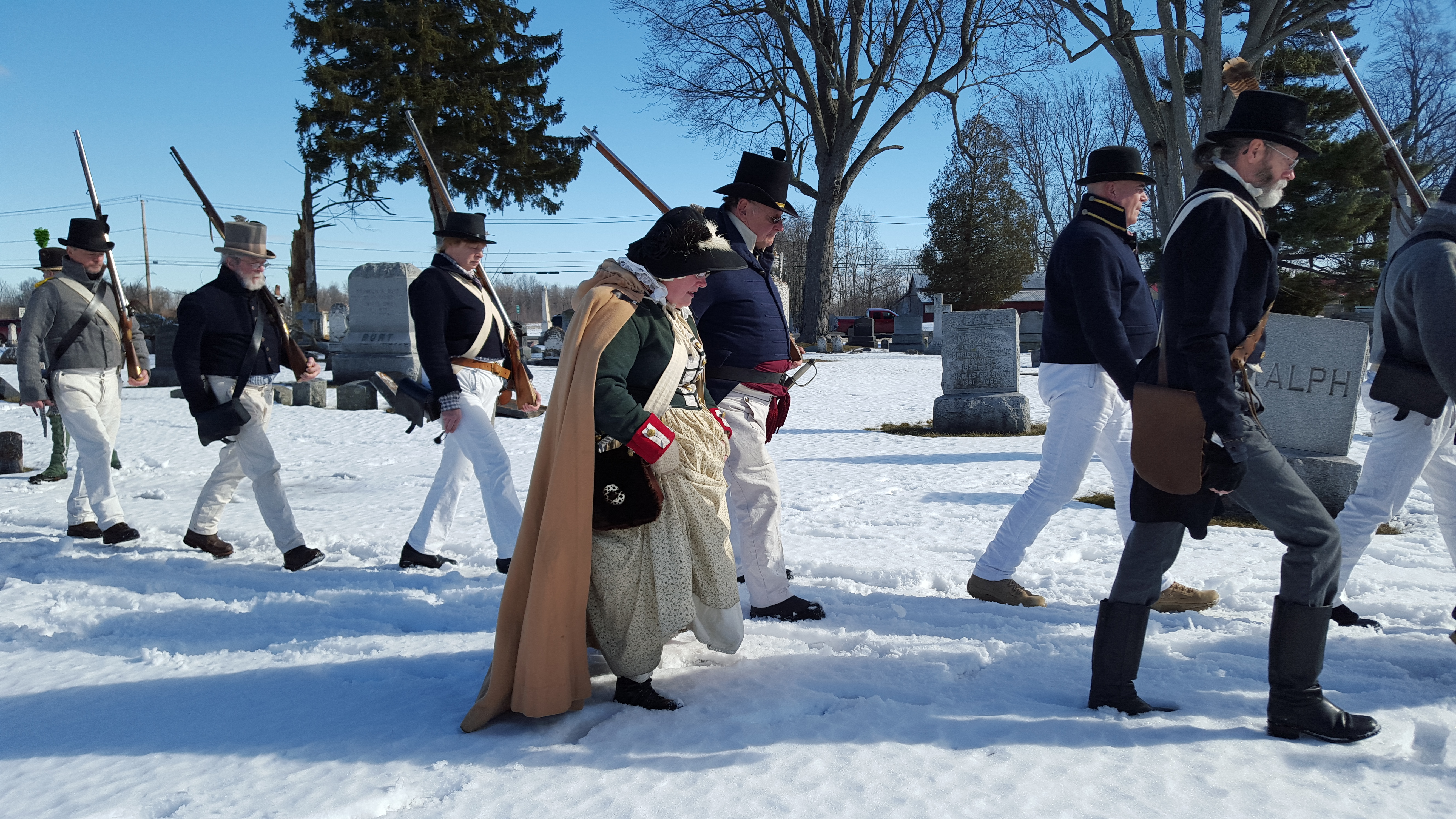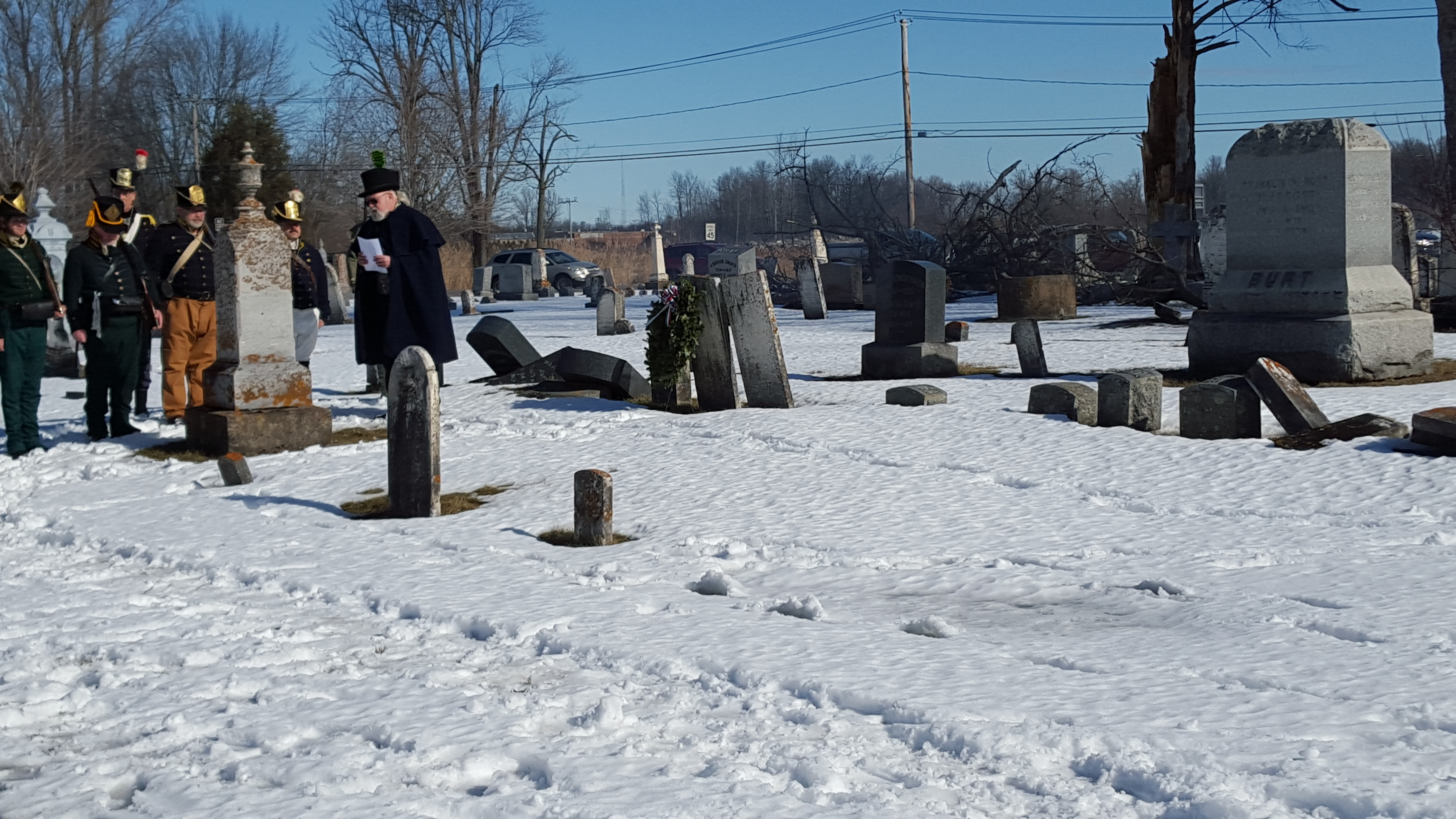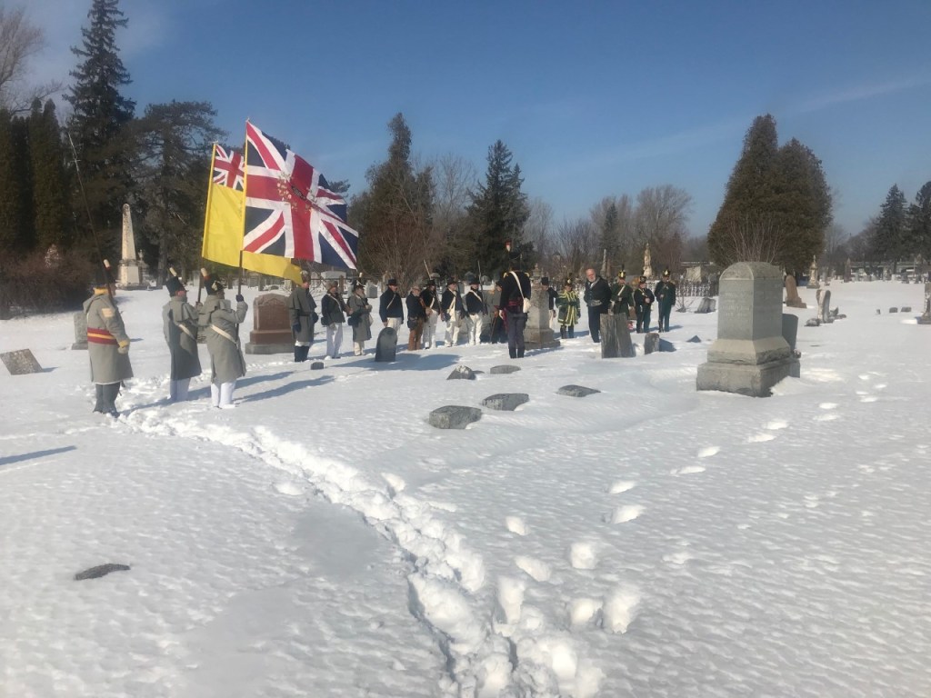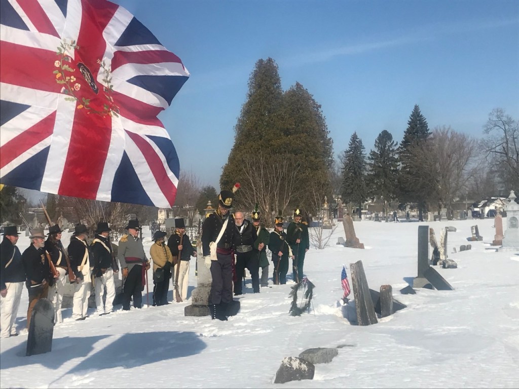 During the Winter Battle Weekend, members of the Fort Association and Forsythe’s Rifles conduct a wreath laying ceremony honoring Sheriff Joseph York and his Lavinia, who both are laid to rest at the Ogdensburg Cemetery.